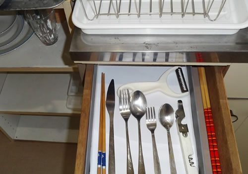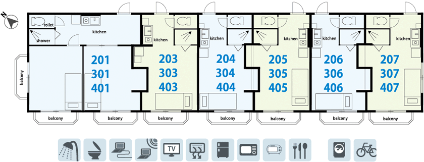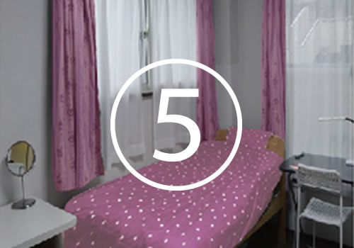 - Bed, bedding, air conditioning, TV, oven toaster, lighting equipment, curtains, tableware